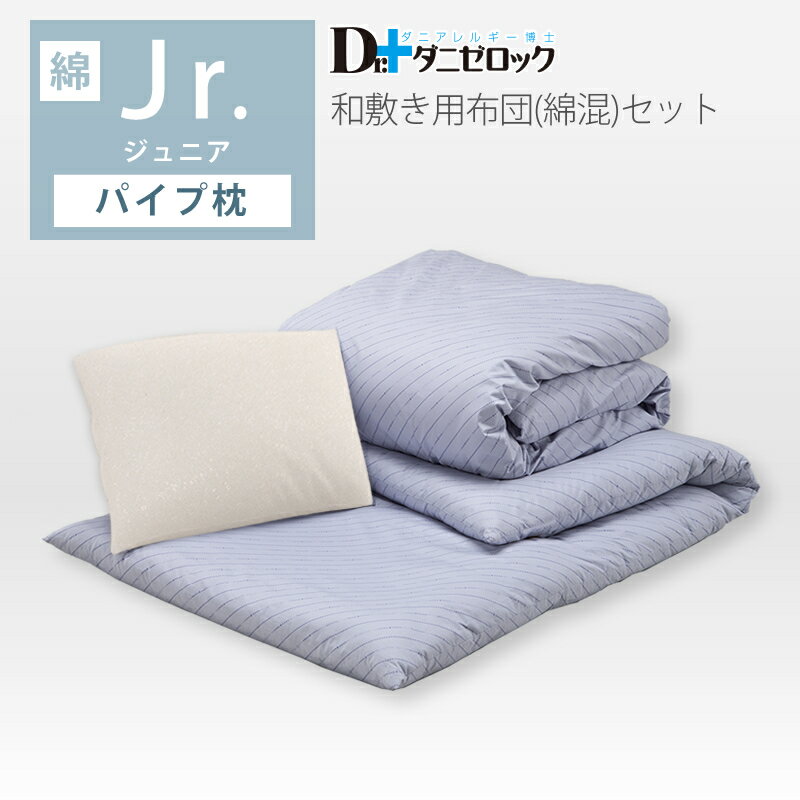 ●掛け布団(綿混)サイズ:135×185cm中わた:約1.6kg 総重量:3kg側生地:綿100% 中袋:ポリエステル100%中綿:綿70%ポリエステル30% ●敷布団サイズ:90×185cm中わた:3.8kg(固芯…1.2kg、巻き綿…2.6kg)総重量:4.6kg側生地、中袋:綿100%固芯:ポリエステル100%巻き綿: 綿25%、デオメディカルコットン25%、ポリエステル50%●パイプ枕(小)サイズ:30×50cm 総重量:1.2kg 高さ調節可能●日本製●防ダニ加工されています。