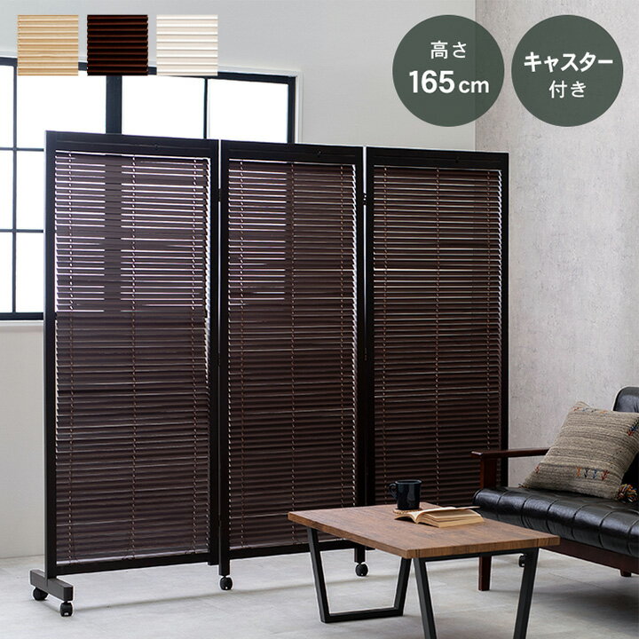 商品名:パーテーション 3連 ブラインド 165cm 衝立 間仕切り キャスター付 折りたたみ ルーバー式 木製 桐材 目隠し ルーバー 北欧 おしゃれ ルーバースクリーン(代引不可)【送料無料】
